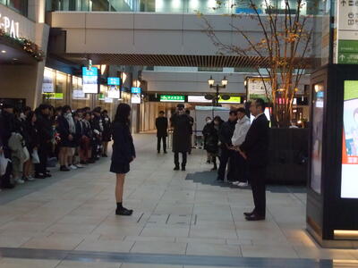 12月3日(水)6:10石巻合同庁舎から2学年修学旅行団が無事出発しました。本日は、仙台駅⇒東京駅⇒京都駅⇒奈良公園散策⇒ホテル着という日程で動きます。