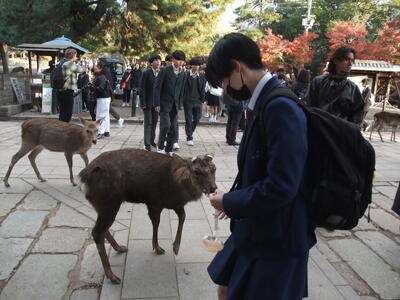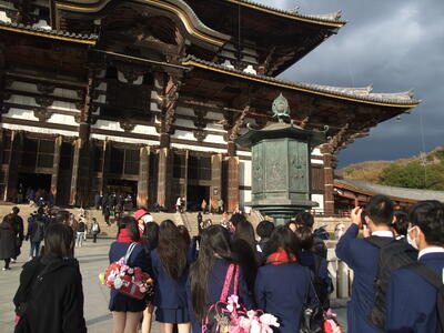 12月3日(水)就学旅行1日目。無事、2学年就学旅行団は奈良に到着しました。疲れは見えるものの多くの生徒が元気に過ごしているようです。2日目は班ごとの「自主研修」です。※写真の一部は生徒が撮影したものを掲載しています。