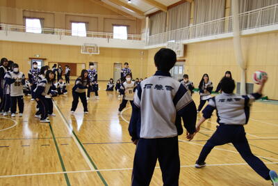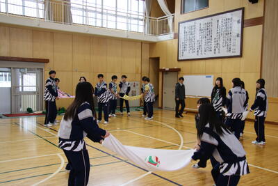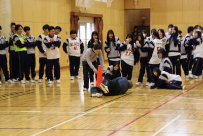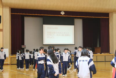3年生は、体育館にて「ドッチボール」や「ぞうきん掛け競争」等の体育的レクリエーションを実施しました。3年生は進路活動に集中する日々を送っています。集中することは非常に大事なことですが、「一時の気分転換」も大事なことです。短い時間ですが、有意義な時間だったと思います。先生方も生徒達と一緒になって活動したことがリフレッシュになったと思います。