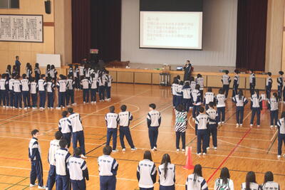 12月2日(火)6・7時間目、12月3日(水)~12月6日(土)の3泊4日で実施される修学旅行の準備及び結団式を実施しました。朝早くから荷物の積み込みをしながら、明日からの修学旅行に生徒達は心弾ませている様子でした。結団式では、旅行業者の方から修学旅行についての詳細説明を受け、代表生徒が修学旅行に出発に向けた決意表明をsました。