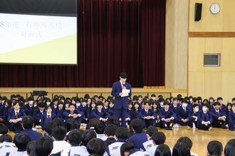 入学式に先立ち、着任式・新任式、始業式が行われ、教頭先生をはじめ11人の教員及び職員をお迎えしました。つい先日、お世話になった先生方と別れを惜しみましたが、新しい先生方をお招きし、生徒一同これからの学校生活に期待を膨らませていました。令和8年度石巻西高等学校の新たなスタートです。