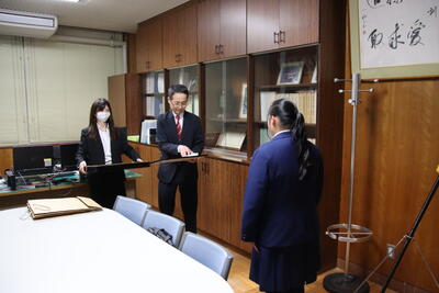 12月1日(月)に本校校長室において授与式が行われ、石巻税務署長より同賞について、賞状及び記念品をいただきました 。