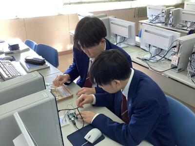 「フィジカルコンピューティング入門」では、Arduinoを用いてLED制御やセンサー活用に挑戦し、電気回路の基礎やプログラミングの重要性を体験的に学びました。生徒たちは、実際に回路を組み、プログラムを書き込むことで、デジタルと世界をつなぐ仕組みへの理解を深めました。